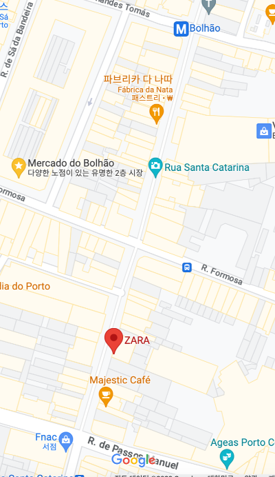 마제스틱카페를 가는 길은 자라, 포르투갈 H&M같은 Pull&Bear 등 스파오브랜드들이 몰려있고 복합상가들도 있었습니다. 두달 여행인데 양말을 하나도 갖고 오지 않아서 양말 찾아 삼만리를 찍었는데 이 거리가 뭔가 많았습니다. 기념품으로 사기에도 좋은 곳들도 있었고 서점, Sephora, 약국, 악세서리 가게 등등 다양한 가게들이 한 곳에 모여있었습니다. 여기가 아무래도 시내로 보이는 거리 같았습니다. 그 끝으로 가면 거리에는